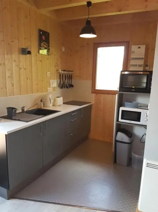 Chalet in Murat-le-Quaire: Chalet montagnard Perce Neige avec terrasse plein sud-5 personnes offers a comfortable stay in Murat-le-Quaire. The property features two bedrooms and a bathroom, accommodating up to five guests. Outdoor Spaces: Guests can enjoy a sun terrace and balcony with mountain views. The outdoor seating area provides a relaxing space, while the terrace is perfect for outdoor dining. Amenities: The chalet includes free WiFi, a fully equipped kitchen with modern appliances, and family rooms. Additional amenities include a hairdryer, coffee machine, dining table, and TV. Activities: Hiking enthusiasts can explore nearby attractions such as Puy de Sancy Mountain (9.3 mi) and Col de la Croix-Morand (9.3 mi). Clermont-Ferrand Auvergne Airport is 54 mi away.